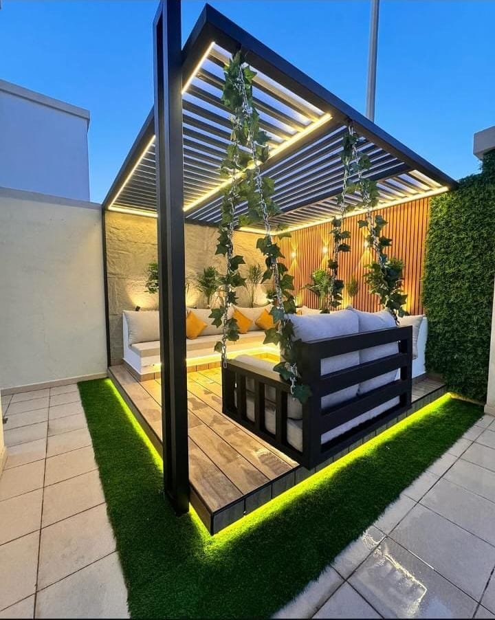 نقدّم في فن الحدائق خدمة تصميم وتركيب جميع أنواع المظلات والبرجولات الخشبية والحديدية والقماشية بأشكال عصرية وجودة عالية. نراعي اختيار الخامات المناسبة للمكان والمناخ، مع تنفيذ احترافي يوفّر الظل والحماية ويضفي لمسة جمالية أنيقة على المساحات الخارجية.