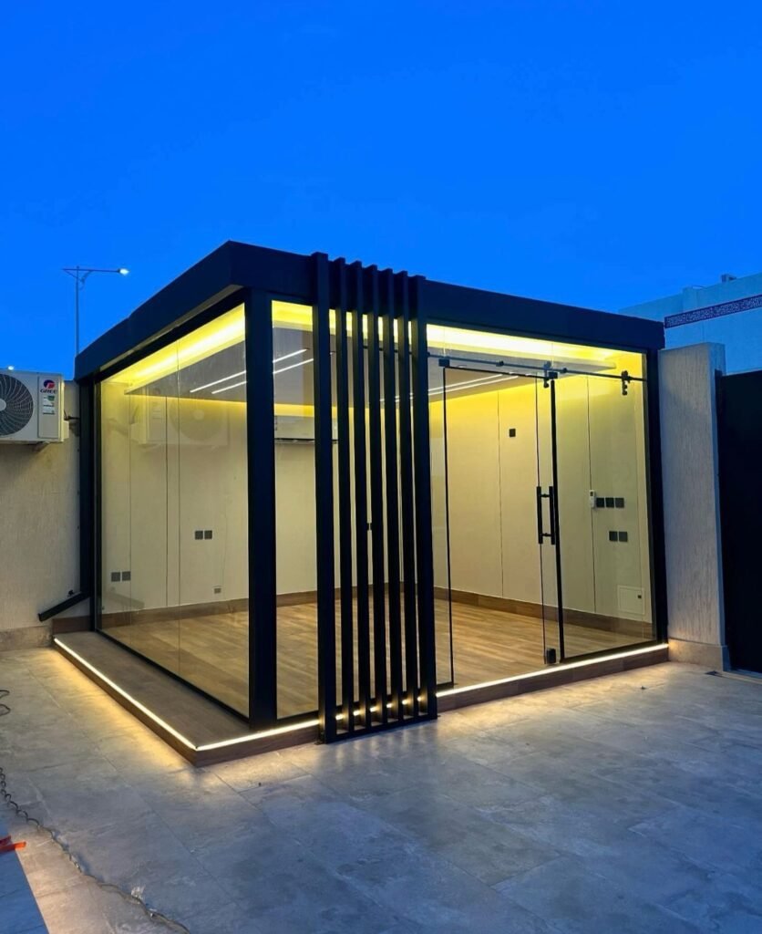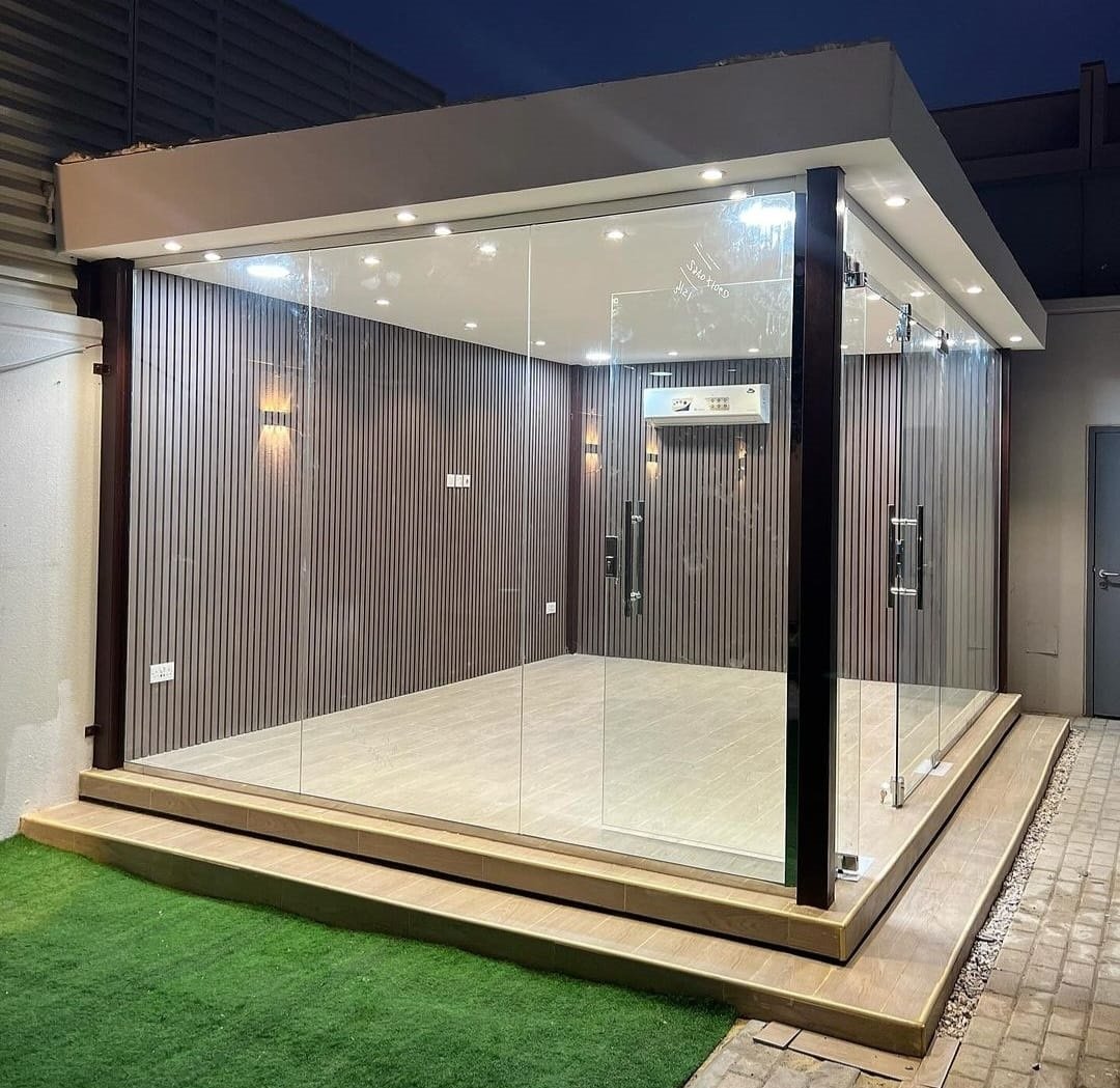 تصميم الغرفة الزجاجية يرفع من القيمة الجمالية للمكان ويمنحه طابعًا عصريًا راقيًا.